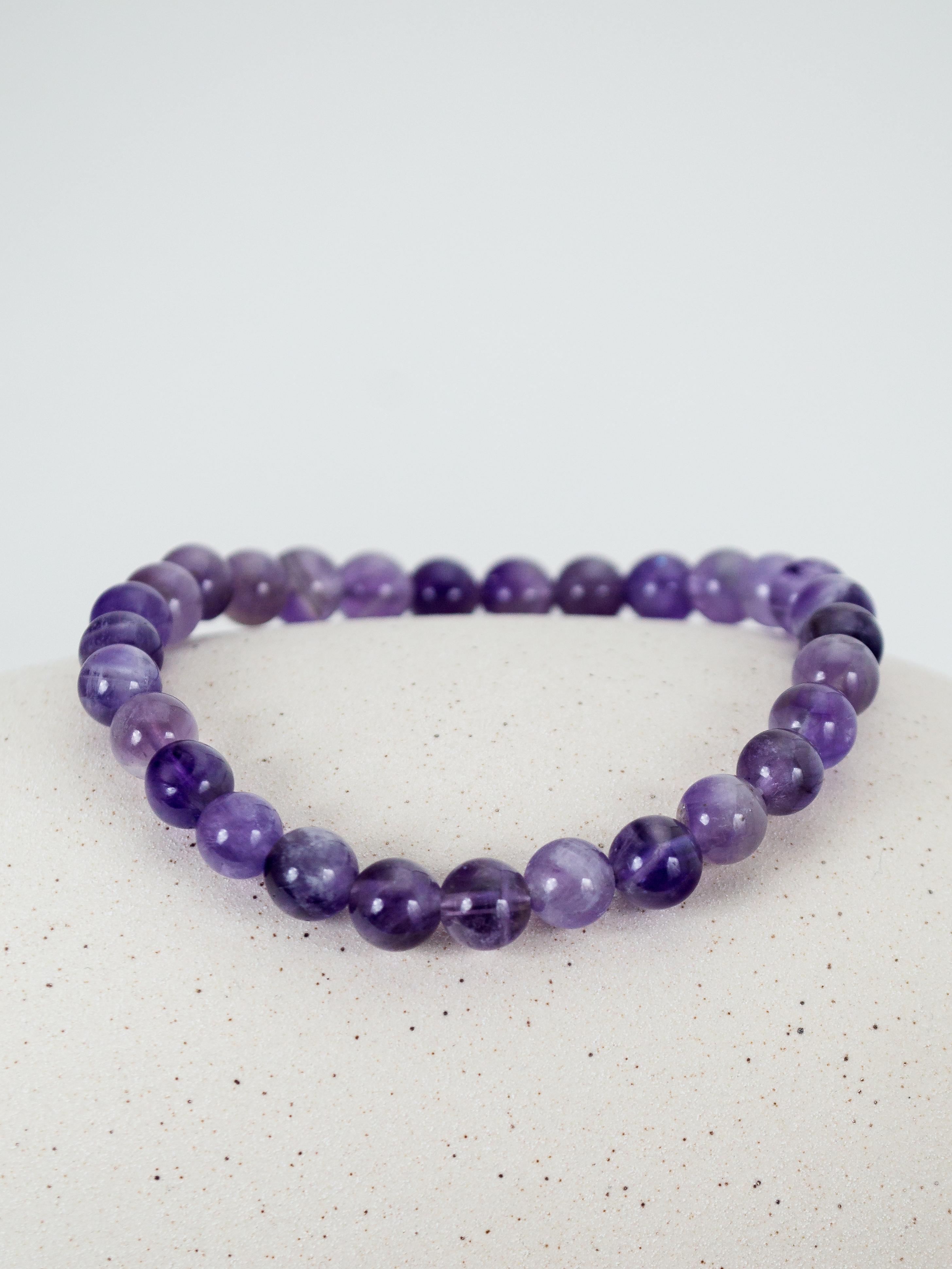 Браслет из натурального аметиста, размер бусин 6,8,10 мм. Размеры на запястье от 14 см до 19 см. Один из самых популярных и красивых минералов. Браслет собран на прочную резиновую нить.